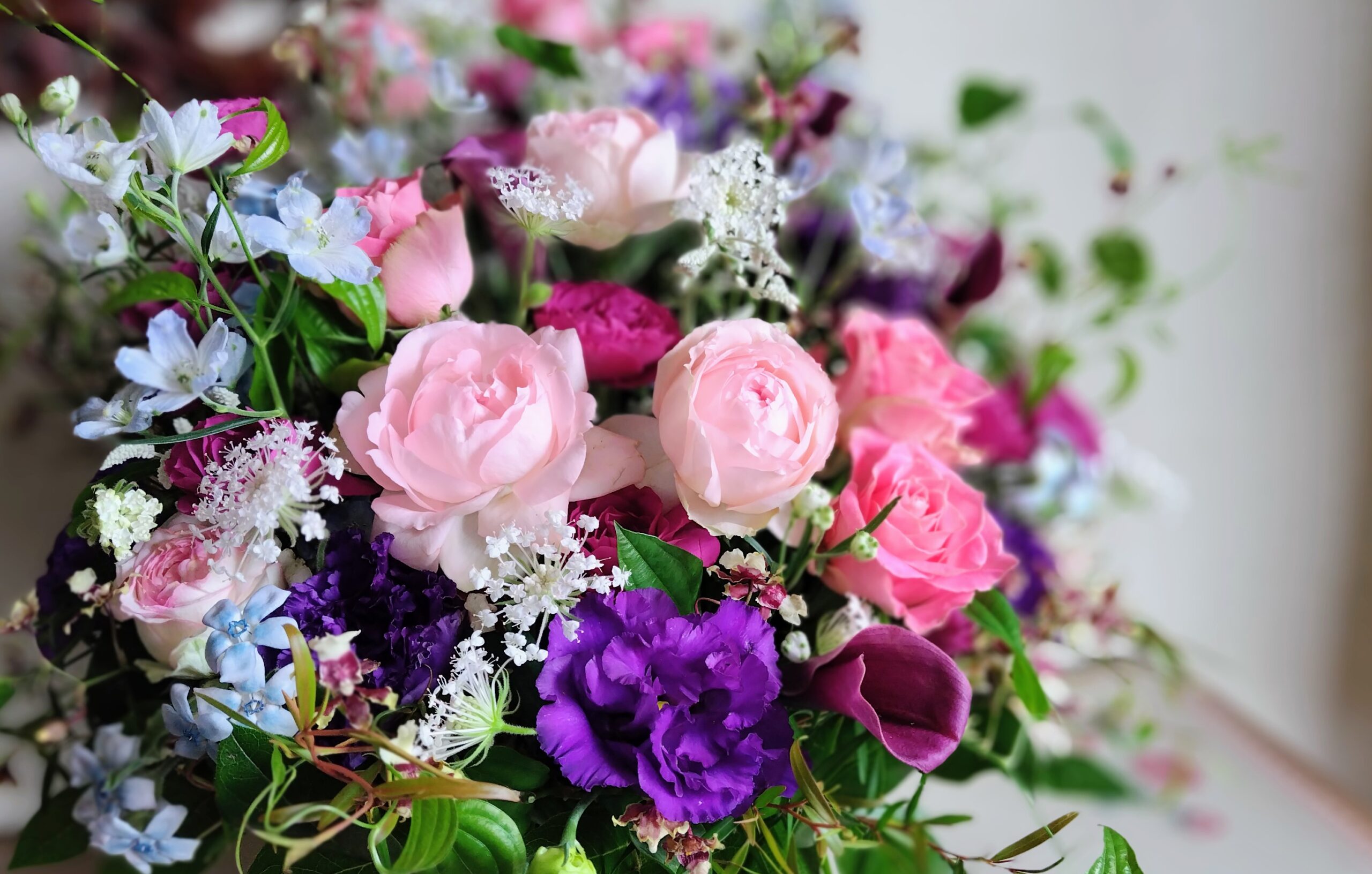 紫色のリシアンサスとカラーも大人色
