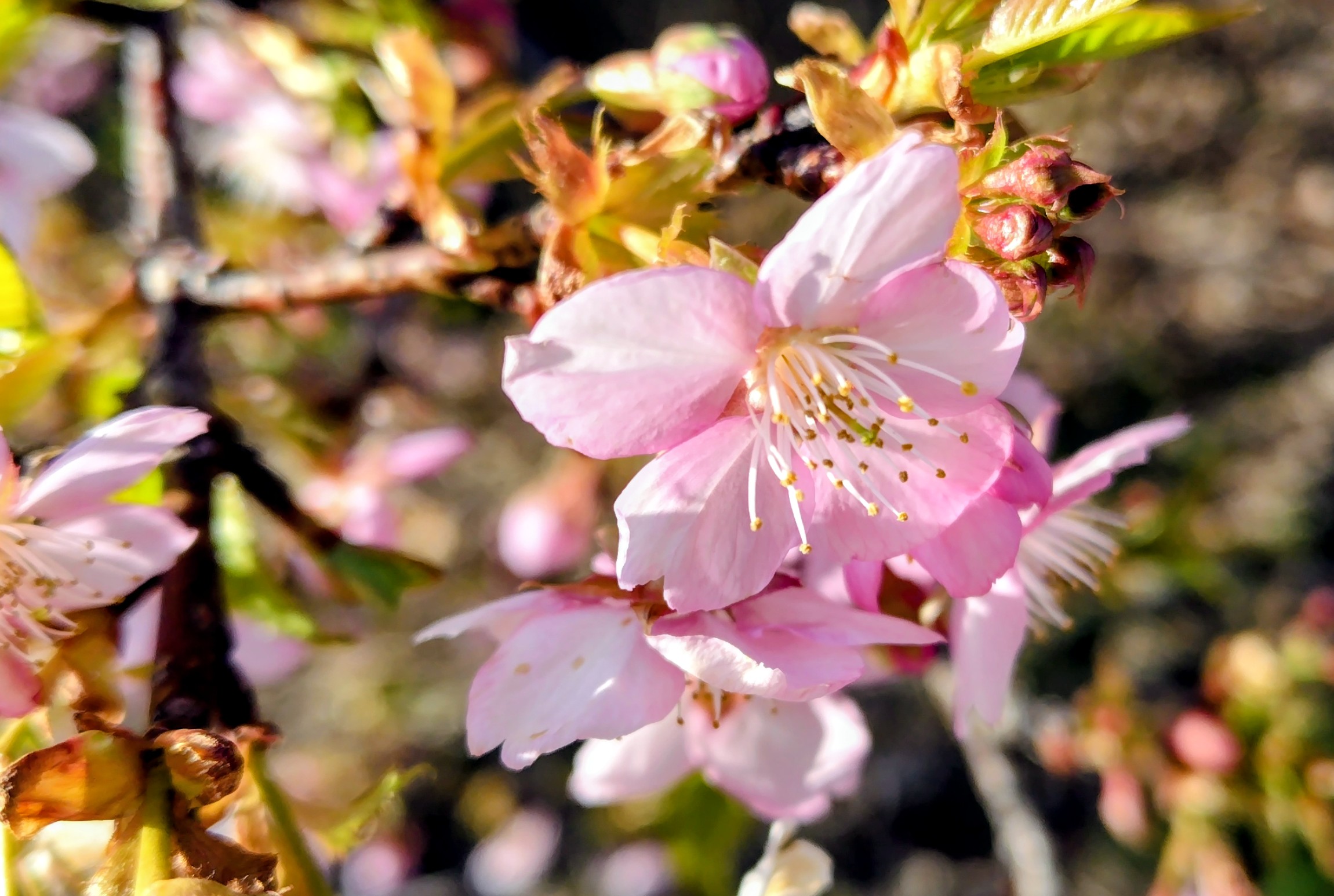 河津桜の特徴は開花時期が非常に早いことと、鮮やかな濃いピンク色の花びらみたいだけど濃いピンク色かな~ソメイヨシノよりは濃い目🌸